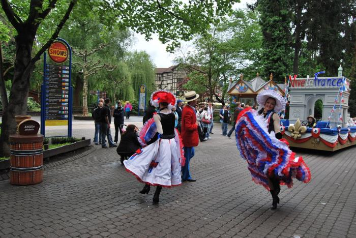 Дождь продолжался всю ночь и утро. Проснувшись утром, мы решили, что парк закрыт, но на всякий случай решили проверить. Оказалось аттракционы работают, а суровые европейцы успешно на них катаются. На огромных размеров паркинге в основном располагались машины с немецкими, французскими и швейцарскими номерами. Билеты стоили всего 36 евро (в диснейленд билеты стоят 55 евро). За эту цену ты сколько угодно можешь кататься на всех аттракционах весь день.