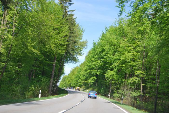 Дорога до Австрии проселочного типа. Попадается много фур, за которыми выстраивается длинный хвост.