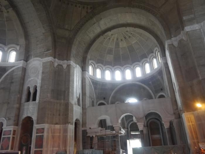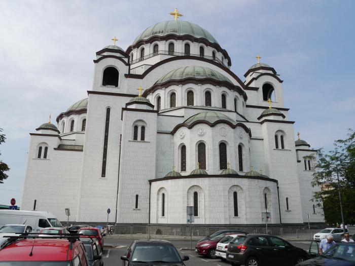 и мы на пути к Храму Святого Саввы. Строительство одного из самых больших православных храмов в мире продолжается уже более ста лет, и если честно, не похоже что скоро завершится. Зато размеры впечатляют, да и смотрится красиво и величественно. Ведь многие сербские, македонские, черногорские церкви пытались выглядеть не заметно, чтобы не провоцировать турок на разрушение. Это-же здание выделяется и доминирует над городом.