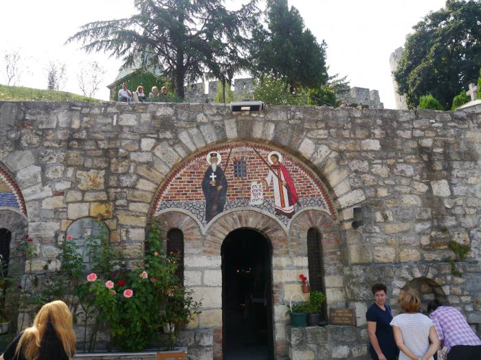Подробно останавливаться о том, когда и кем строилась крепость, сколько раз разрушалась и перестраивалась захватчиками я не беду. И не потому, что это не интересно. Просто совсем недавно на сайте была написана почти исчерпывающая глава об этом, что-то добавить мне нечего. Расскажу о наших впечатлениях и немного фото. Поднявшись выше сразу попадаем ко входу в Церковь Святой Петки (Праскевы). И не просто попадаем, здесь ведётся торжественное богослужение в честь её престольного праздника — 8 августа 2016 года день Святой Праскевы! Вокруг толпы верующих, суровые священнослужители, но поснимать мне разрешили.