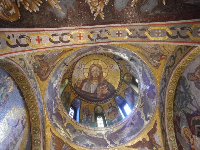 Сама церковь была построена в 1937 году, но на этом месте гораздо ранее стояла часовня с мощами Святой Петки. Нам очень понравилась мозаичная роспись внутри и снаружи.