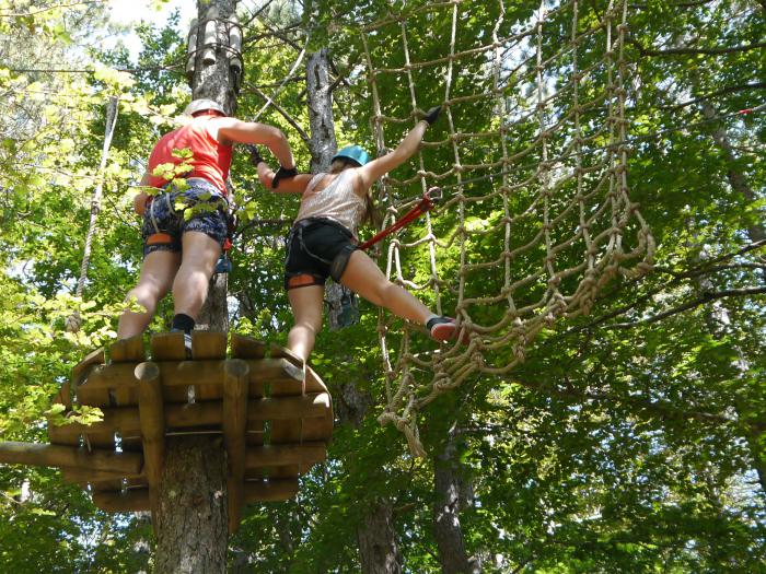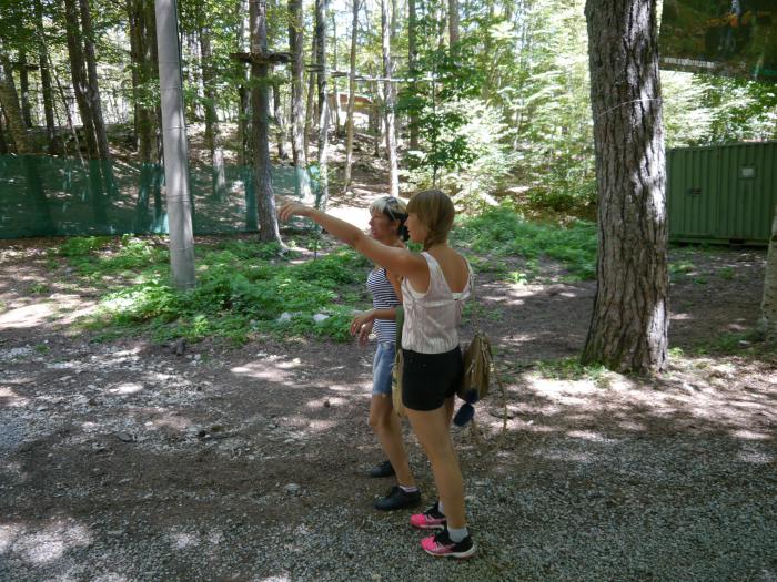 Кстати, все посетители верёвочного парка были из России, либо русскоязычные. Черногорская область какая-то. Сам парк находится в тени реликтовых сосен, прохладно, дышится легко и свободно.