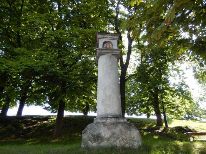 Перед капеллой установлен Чумной столб Голгофа. На верху столба установлен крест, который символизирует такое событие как распятие Христа. На каждой стороне столба — выложен мозаикой один из образов святых Чехии.