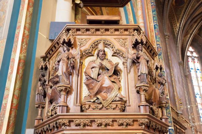 Внутренний интерьер меня очень впечатлил. Здесь прям каждая пядь поверхности покрыта художественной росписью. Ведь этот храм с каждой перестройкой обогащался росписями в разном стиле — тут и готическая живопись, и шедевры барокко, и работы в стиле модерна. Вообщем шикарный интерьер!!!