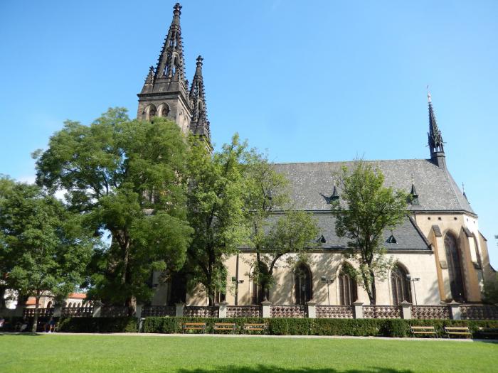 в противовес пражской епархии решил построить собственный храм, он обратился за благословением к Папе Римскому. В 1070 году оно было получено и началось возведение собора. Сначала в романском стиле построили небольшой собор из трёх нефов. После пожара в 1249 восстановили уже в готическом стиле. Потом Собор перестраивали еще несколько раз: в 15 веке в стиле ренессанса, в 17 веке в стиле барокко. И только в 19 веке Собор обрел свой нынешний облик в неоготическом стиле, к нему добавили две башни по бокам главного фасада, которые получили название «Адам » и «Ева». А высота шпилей на башнях равна 58 метров и видно их издалека.