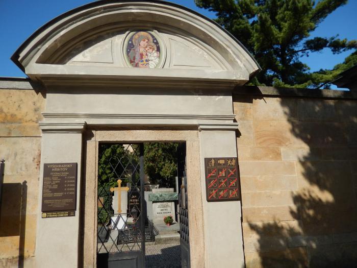 Отсюда уже можно пройти к Базилике Святых апостолов Петра и Павла. Но сначала я решила зайти на знаменитое Вышеградское кладбище, на котором захоронено много знаменитых деятелей чешской культуры — художники, скульптуры, литераторы, журналисты, музыканты. Кладбище находится в непосредственной близости от Базилики.