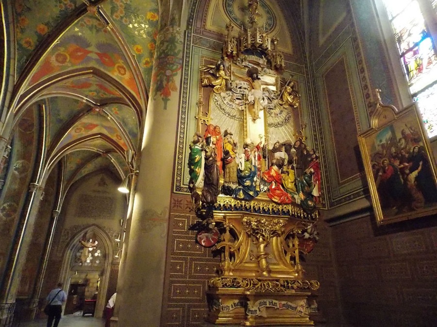 Так как я одна гуляю, и никто меня никуда не торопит, я решила зайти в Базилику и осмотреть её изнутри. Вход оказался платным — 100 крон и только налом. Крон у меня не было, были только евро, пришлось уговорить за 5 евро пустить меня внутрь.