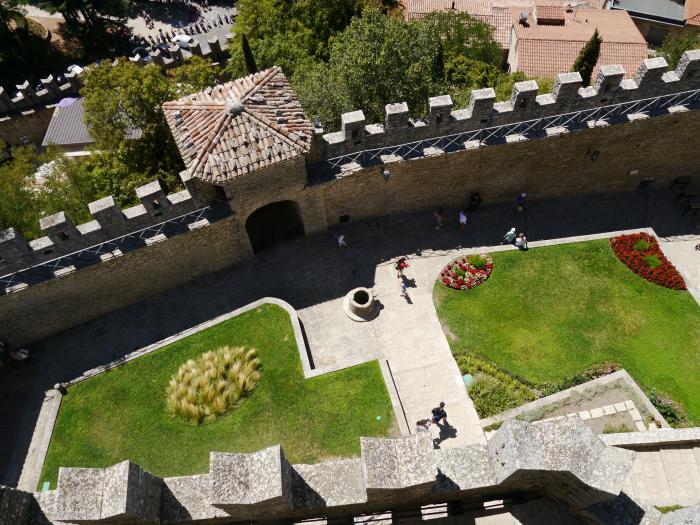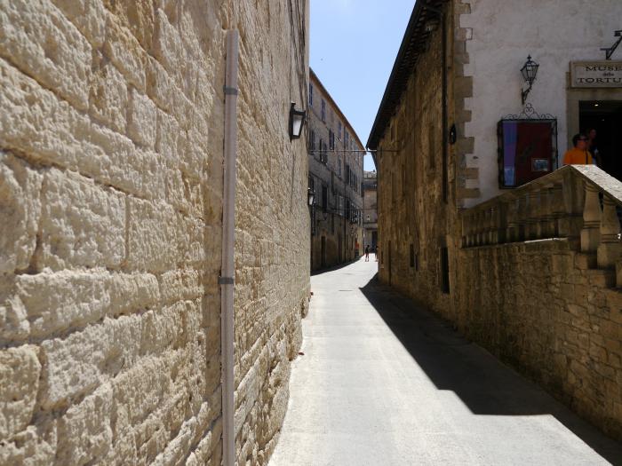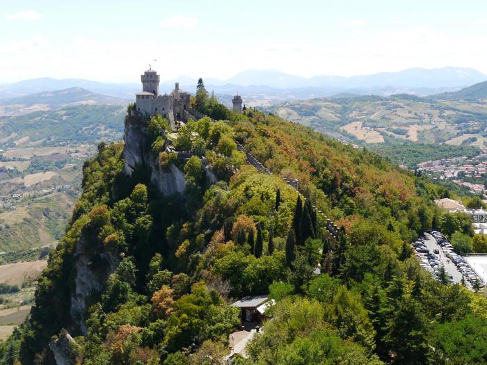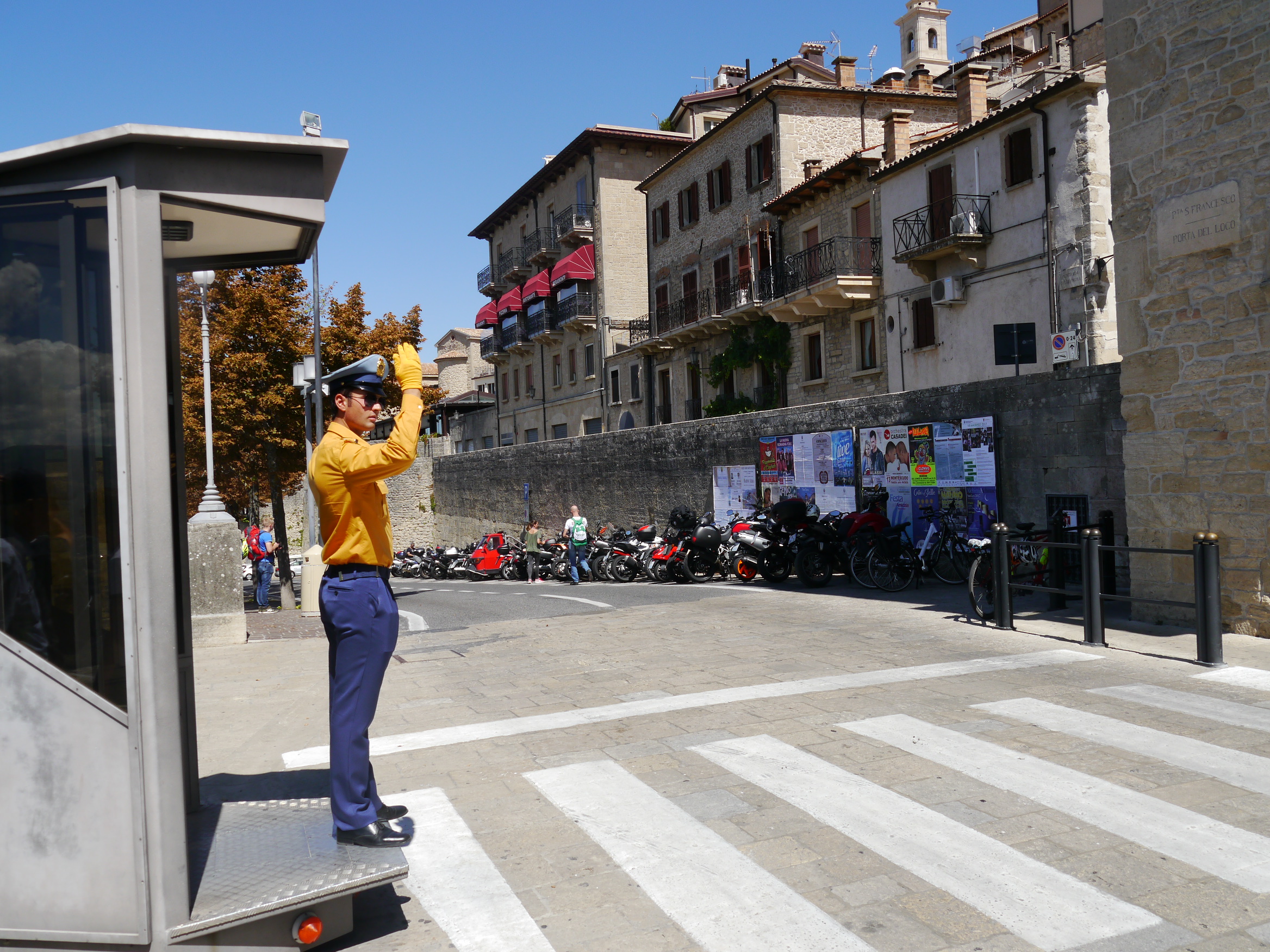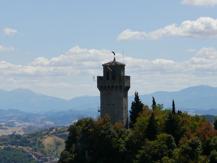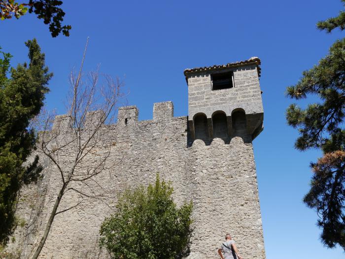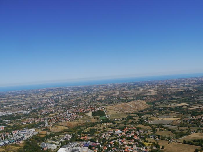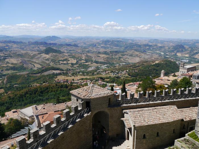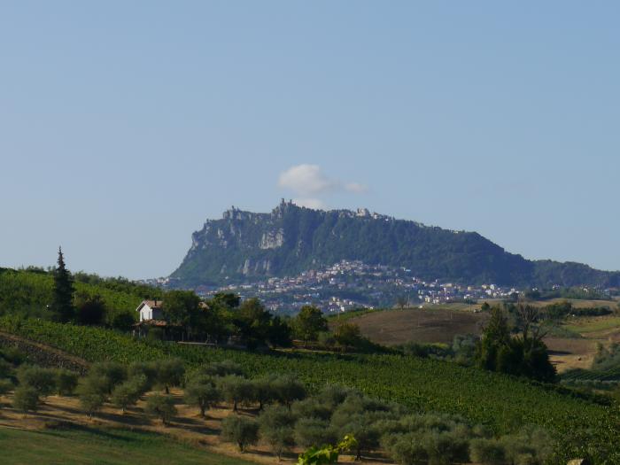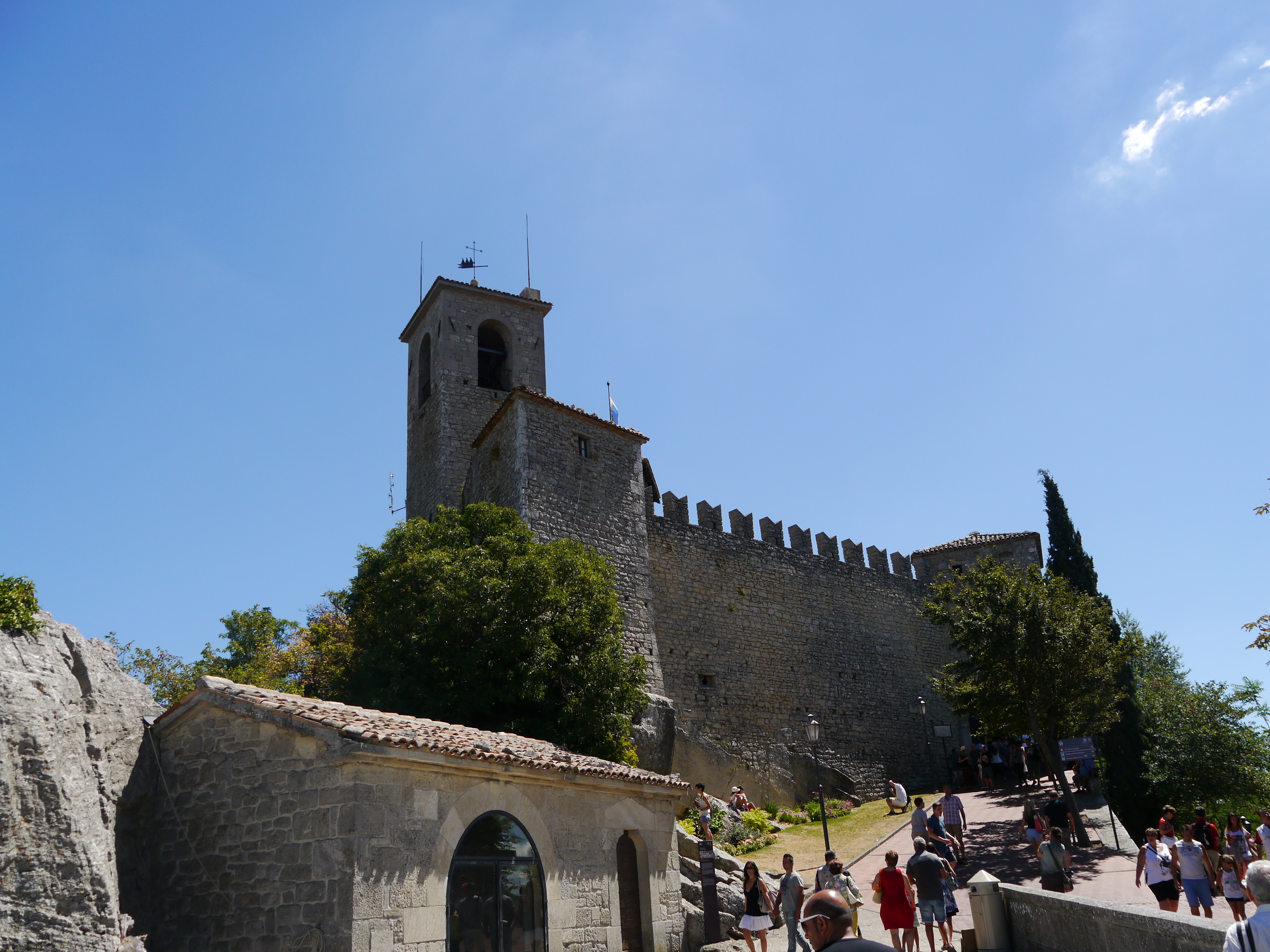В планах на этот день — Сан-Марино. В первую очередь для Ольги шоппинг, во-вторую для меня достопримечательности. Ещё в Туле выписал адреса самых значимых аутлетов карликового государства, но все они оказались закрыты! Похоже навсегда. Разочарование жены было безмерным. Нет, нашли какой-то аутлетик, но хиленький, один смотритель-продавец на четыре этажа, кондиционеры не работали, экономия. Некоторые наши секонд хенды выглядят лучше, но платьишко было куплено, иначе день потерян ))).