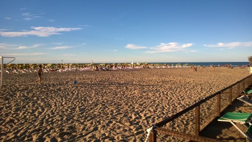 Оставшееся время решено было скоротать на пляже в Римини, заодно сравнить адриатическое побережье Хорватии и Италии. Забегая вперёд, всё не в пользу последней. Песок как в Анапе, мелкий и прилипучий, толпы отдыхающих и море не очень чистое. Часок позагорали и быстрей бежать из этого места.