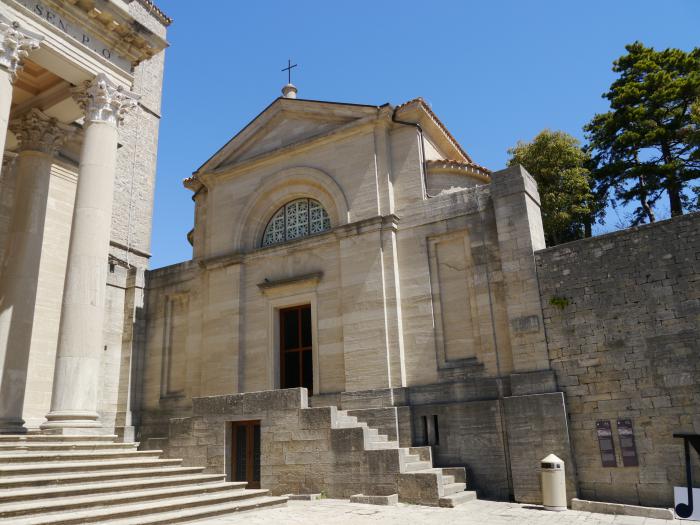 стоящему на Площади Свободы. Ещё здесь привлекает внимание Статуя Свободы работы Галети, переданная в дар Сан-Марино одной берлинской графиней. Под площадью, кстати, находятся цистерны для сбора воды. В неоклассической Базилике-дель-Санте, под алтарём, покоятся мощи Святого Марино, основателя республики,