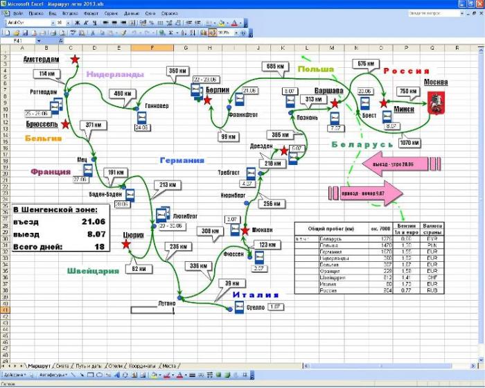 Для удобства подготовки путешествия создан в Exel файл с маршрутом, сметой расходов, координатами интересующих меня мест.