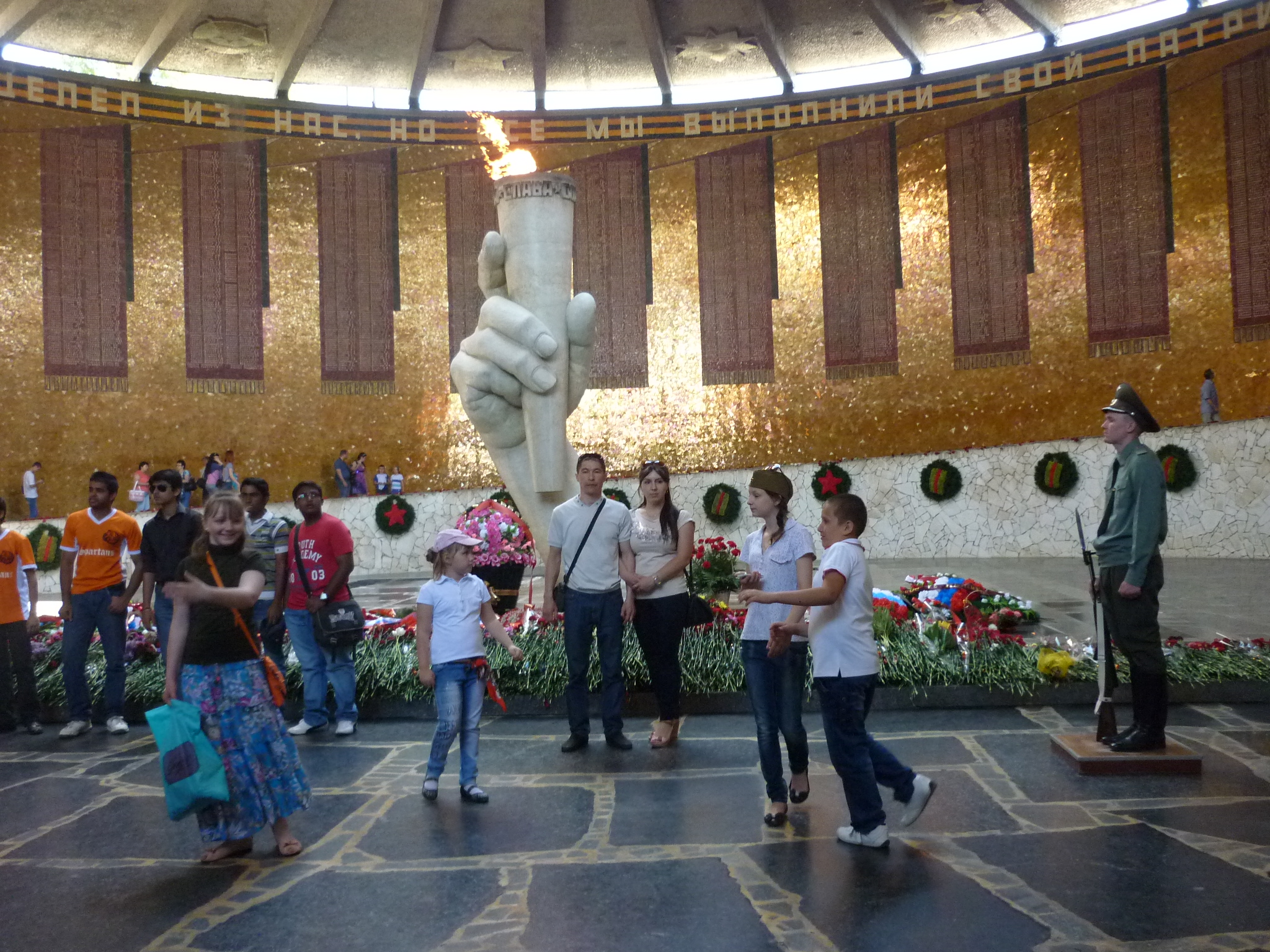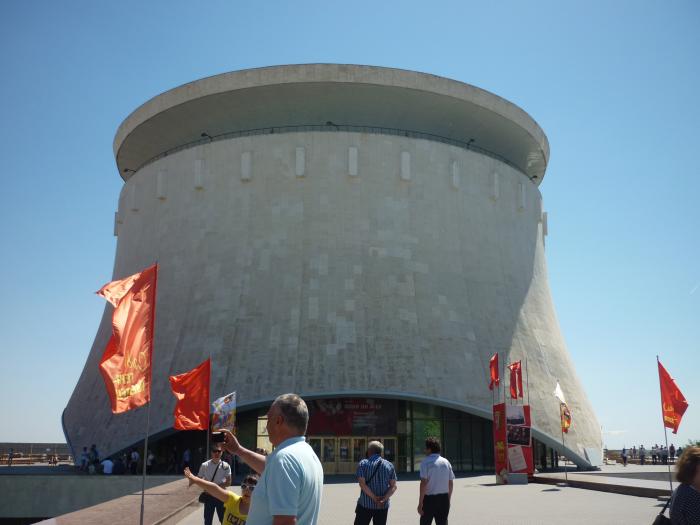 Въехали в Волгоград и двинулись к Мамаеву Кургану, в 10.30 были на месте, с утра машин в городе было очень мало. Оставили машину у подножия Мамаева (знаков запрещающих остановку не было). Поднялись по лестнице к монументу Родина-Мать — этот путь обязательно нужно пройти каждому, посмотреть всем кто будет — смену караула у Вечного огня. После Мамаева, сели в метротрам, у этого маршрута есть подземные остановки, как в метро, и поехали к Панораме Сталинградская битва, дом Павлова, Мельньце. Поразил музей в Панораме.