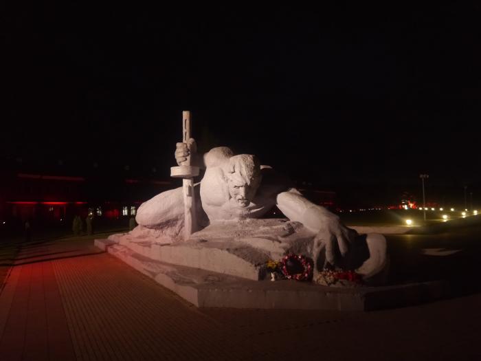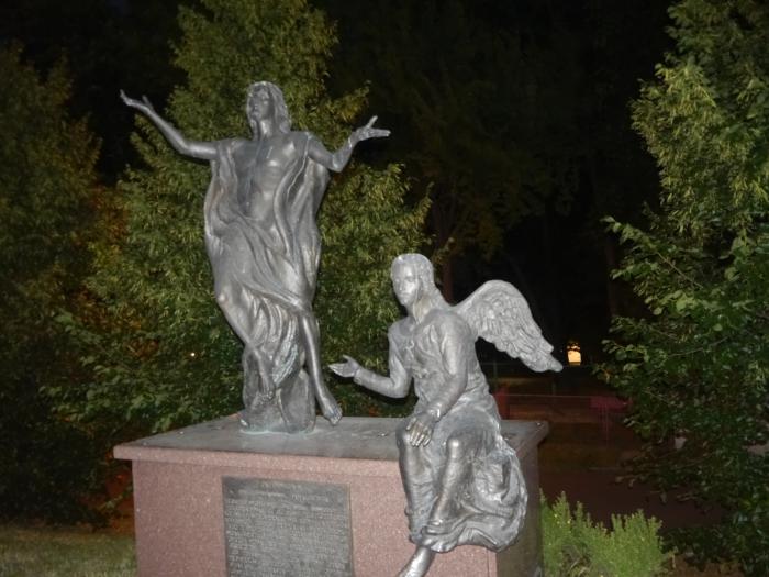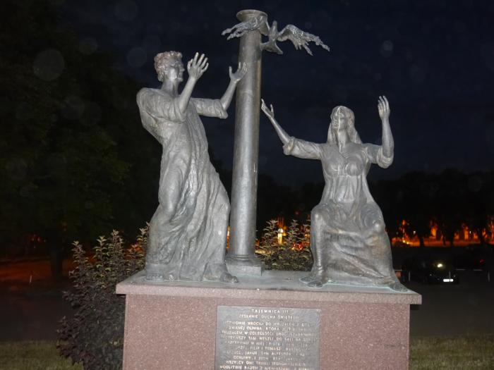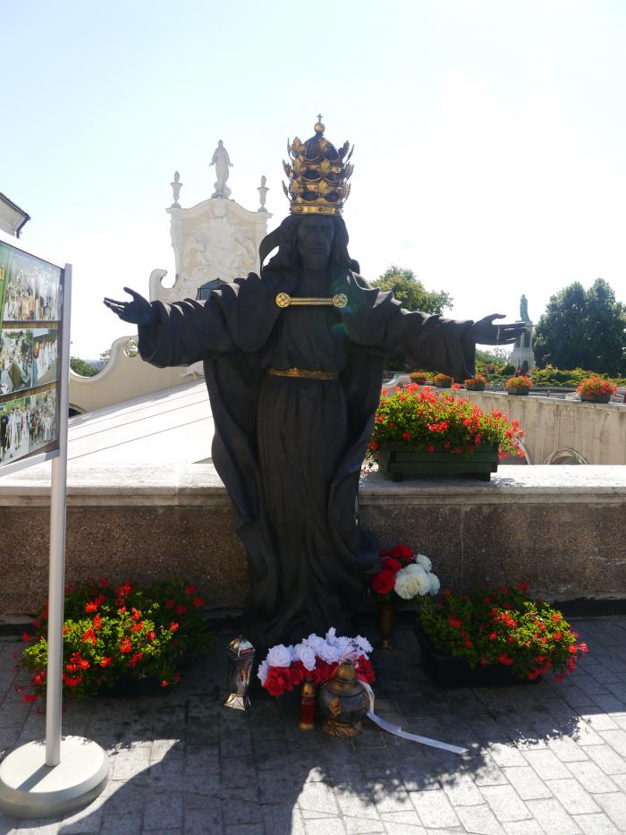 Как только мы вошли на территорию, то поняли, что идёт молебен с большим скоплением народа на улице. Процессия останавливалась у огромных скульптурных композиций соответствующих четырнадцати стояниям крестного пути, молящиеся становились на одно колено и повторяли молитву вместе со священником. Вот фото нескольких этапов стояния. Все займут очень много места в отчёте.