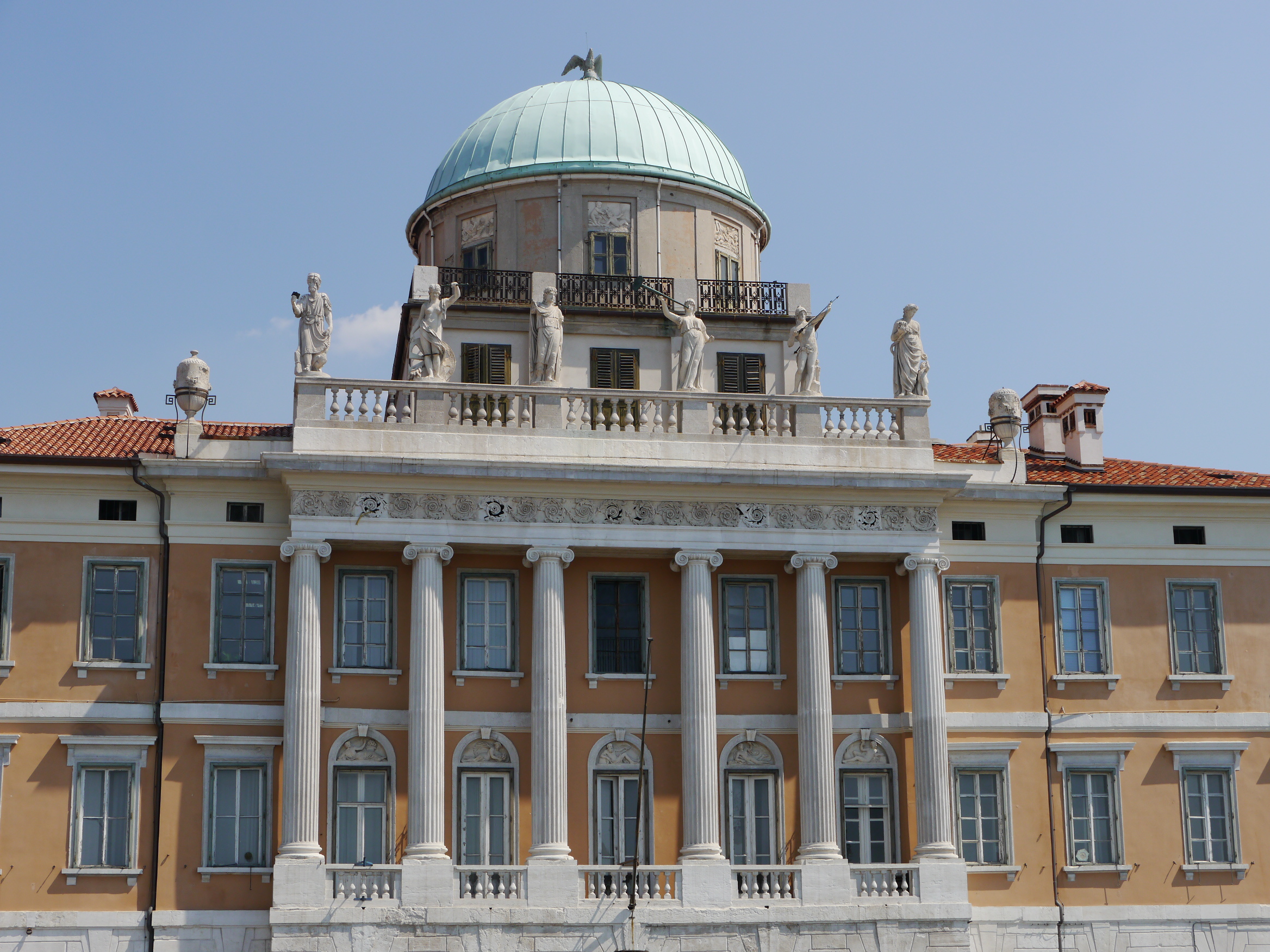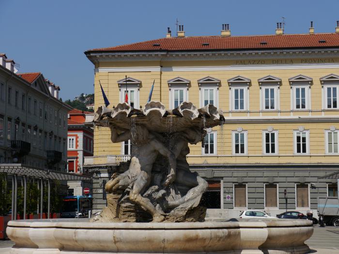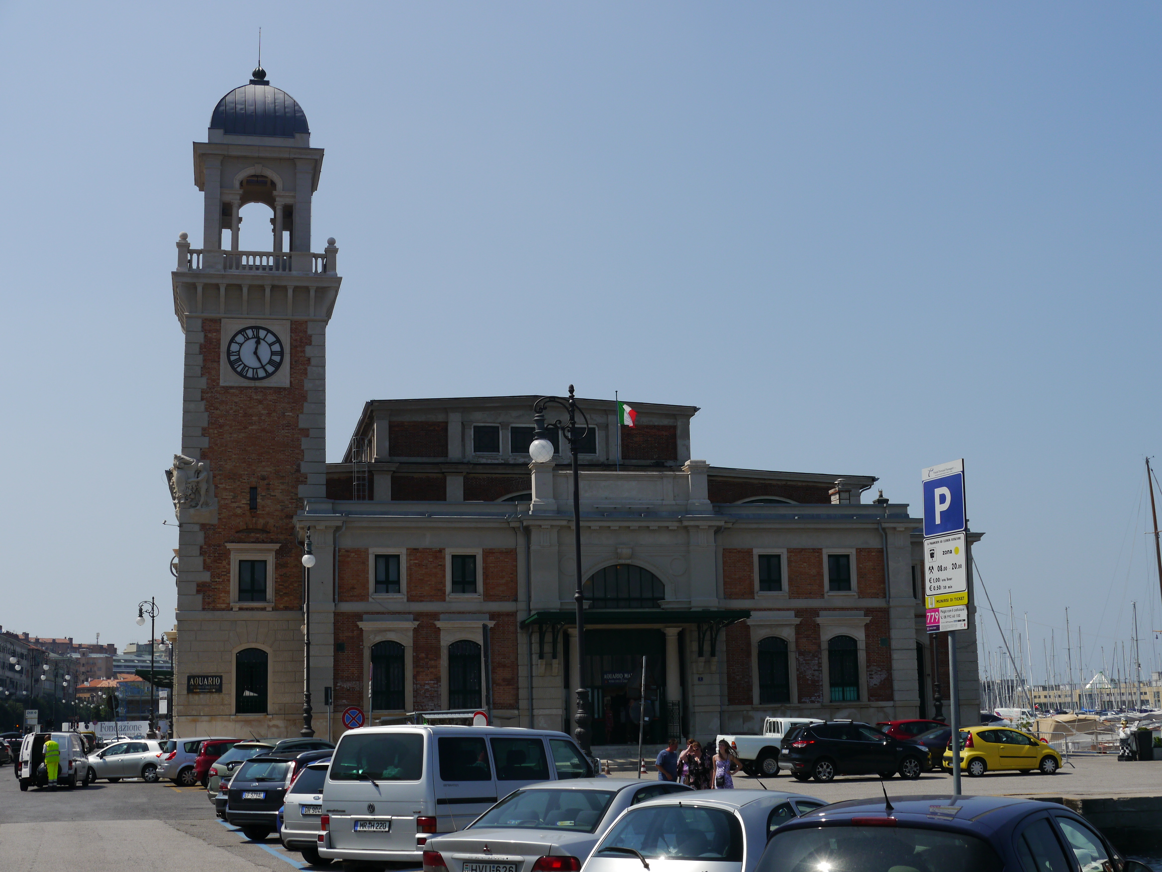 Ведь несколько столетий он находился под властью Австрийской империи, и вся центральная часть города была возведена по проекту австрийской зрцгерцогини Марии-Терезии, да и в состав Италии город вошёл лишь в 1954 г. Первым зданием, привлёкшим наше внимание, оказался бывший центральный рыбный рынок. Сейчас здесь находятся выставочный зал и морской аквариум.