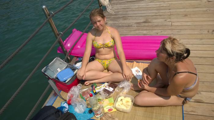 Утро следующего дня началось стандартно. Пока девчонки спали, я «сгонял» в Лидл, купил булочек, йогуртов и ещё чего-то вкусного, и позавтракав мы поехали к морю. Решено было искупаться, перекусить на пирсе вкусняшками из сумки-холодильника: