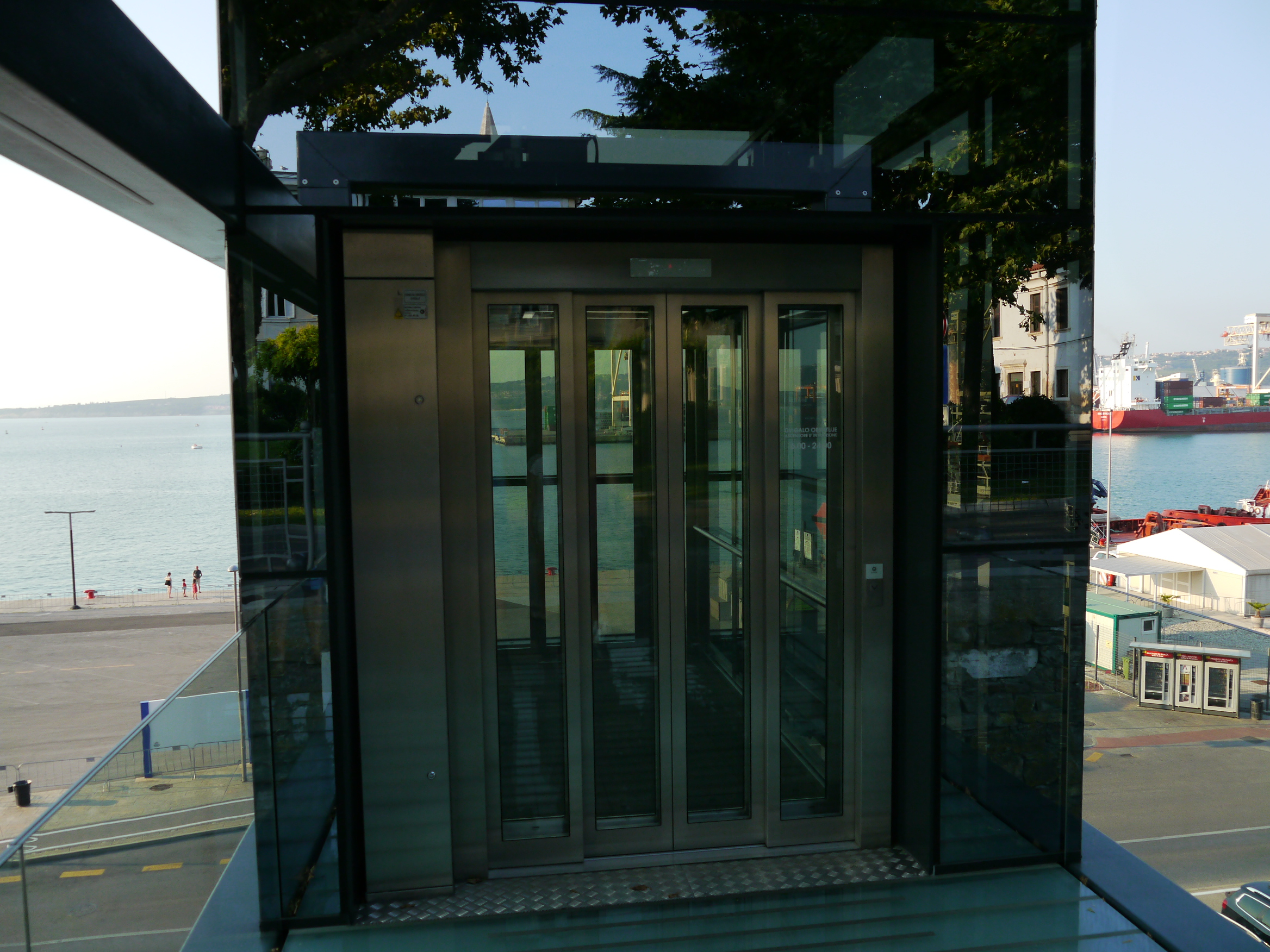 Добрались мы быстро, минут за двадцать (расстояние от Порторожа до Копера 16 км.) и обнаружив бесплатную парковку на набережной оставили авто там. И примерно через пять минут поднимались на лифте (так-же бесплатно) на крепость старого города