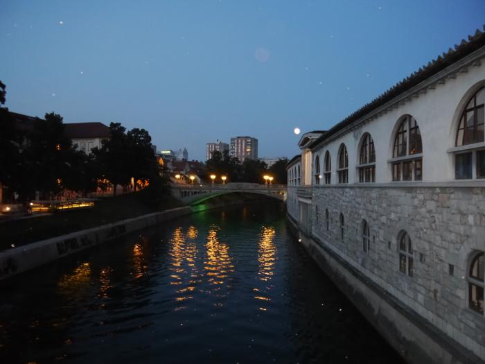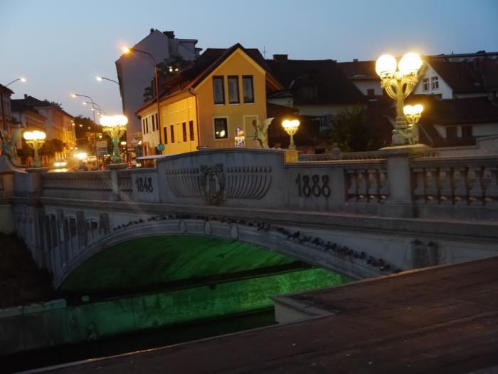 Чтобы найти ещё один известный мост — Тройной, пришлось просить подсказку у «аборигенов». А он оказывается был рядом. По пути «сфоткал» ночную Любляницу: