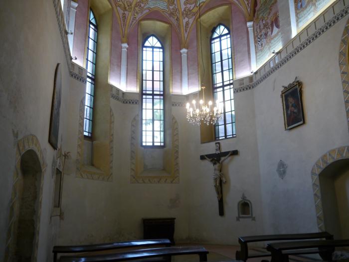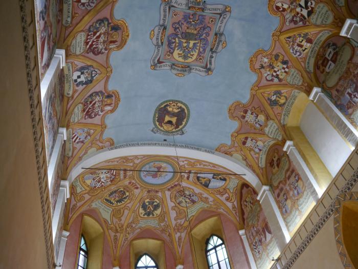 Затем перемещаемся в небольшую замковую церковь. Особенно понравилась потолочная роспись, хоть и новодел: