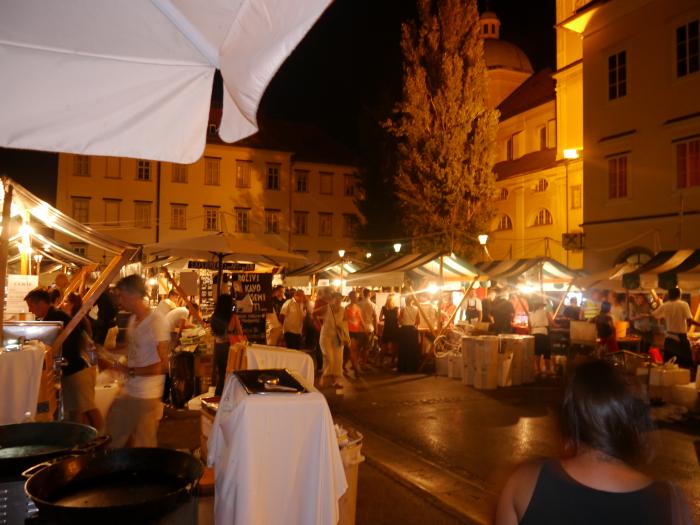 Я так и не узнал, этот пир тела происходит каждый день в Любляне, или нам просто повезло. Затем, наконец мы вышли к Тройному мосту