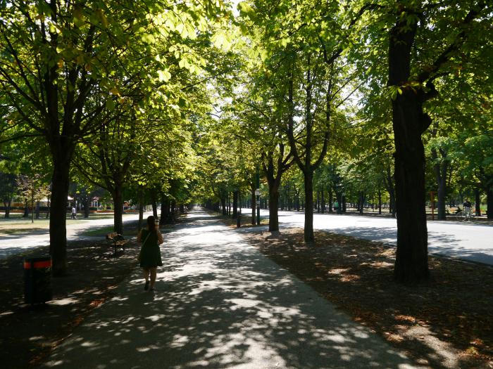 Для дочери это была первая в жизни поездка в метро, и впечатления остались положительные: чисто, аккуратно, пассажиров не много. Была только одна особенность — двери автоматически не открывались, необходимо было для выхода нажать на «ручку». Но с этим мы разобрались быстро. Первая остановка — знаменитый парк Праттер. Надо сказать, в этот день была «знатная» жара, градусов тридцать пять, не меньше. Даже газонная травка не выдержала высокой температуры и пожухла.