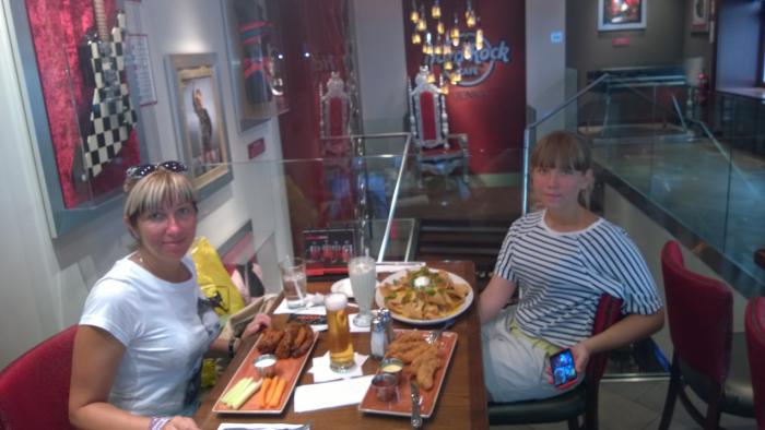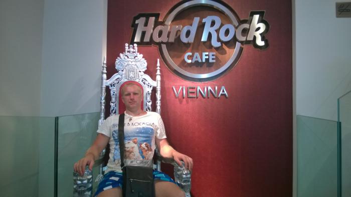 Устав от походов, решено было подкрепиться, а затем зарядив фотоаппарат идти на концерт. Место, где поесть стараниями Юли было безальтернативным — конечно Hard Rock Cafe Vienna.