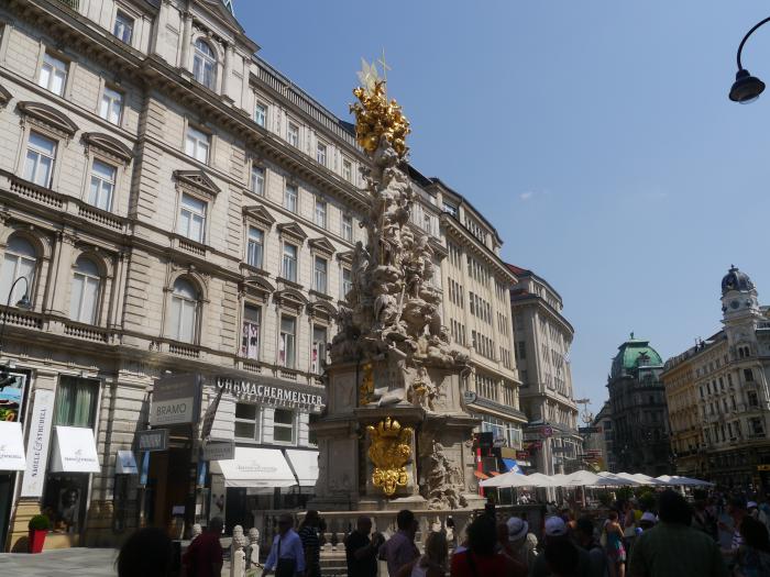 Затем перемещаемся на одну из наиболее известных улиц Вены — Грабен. Она скорее похожа на вытянутую площадь, чем на улицу, в центре которой располагается Чумная колонна: