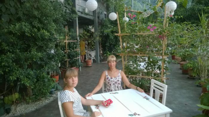 А вот отель кстати понравился. Как ценой — по тому курсу 1800 рублей с завтраком на троих, так и прекрасной оранжереей в ресторане.