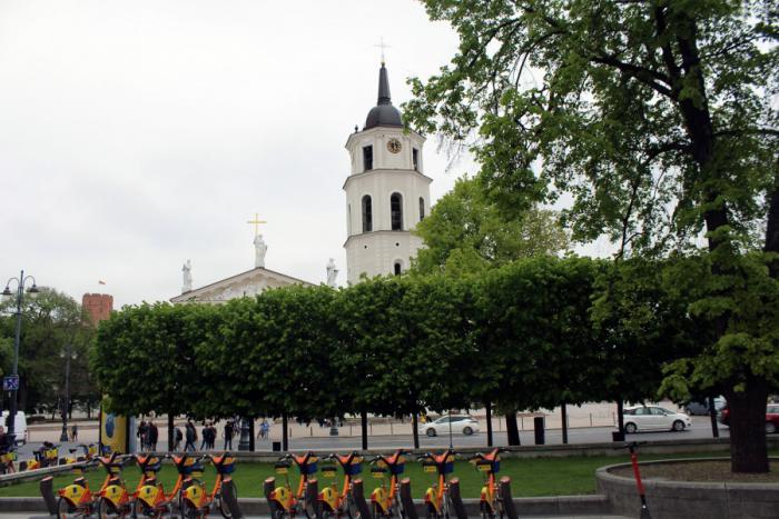 Мы подходим к Кафедральной площади и видим знаменитую визитную карточку Вильнюса – башню замка Гедиминаса.