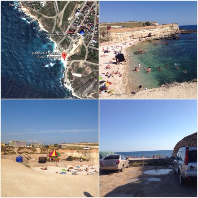 Голубая бухта расположена на окраине города по-соседству с 35й батареей. Именно оттуда еще в конце мая мы заприметили белоснежный пляж с чистейшей голубой водой. Тогда он выглядел совершенно диким) но, как оказалось, это любимое место многих туристов и самих севастопольцев)