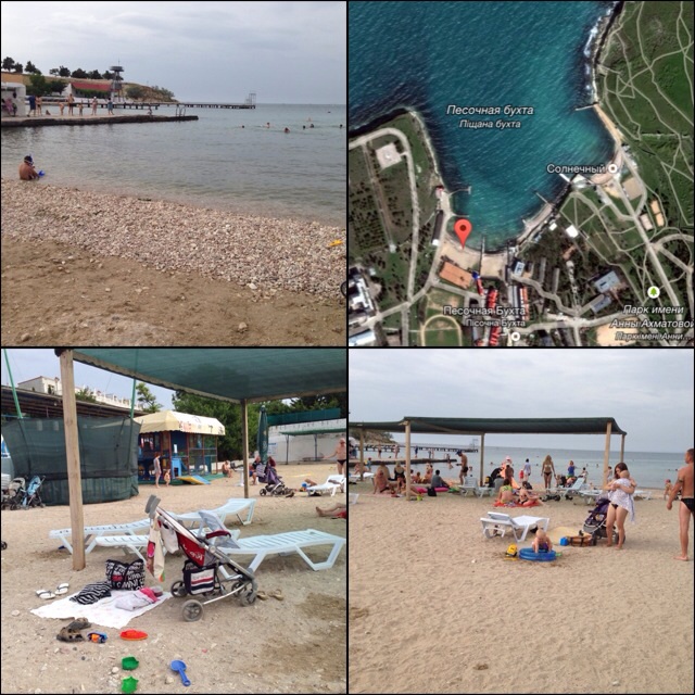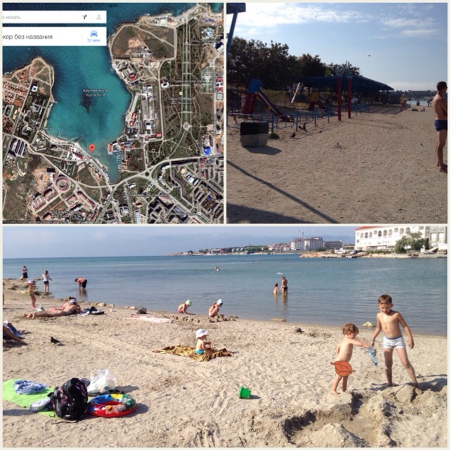 Чуть не забыла про него) ездили мы туда постоянно, когда только прогревалась вода. А там она прогревалась быстрее всего, потому что очень мелко, фактически можно вброд перейти эту бухту, по крайней мере в районе моей метки. Пляж песочный. На входе в воду довольно много крупных камней, но все-таки можно обойти, если постараться;) хорошо, что есть детская площадка. Опять-таки вся та же еда, что и везде. Плюс на въезде слева очень хорошая пиццерия Igorello. Но минус вот какой: по крайней мере в этом месте пляжа, где купались мы в мае, в сезон будет грязноватая вода. Бухта вытянута, промывается плохо. Поэтому лучше будет уходить поближе к открытому морю.