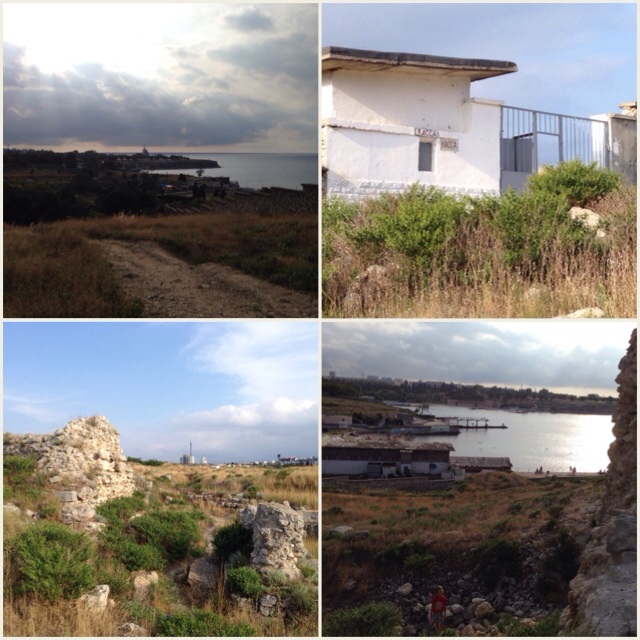 Выйдя с пляжа, повернув налево и поднявшись в гору, можно совершенно бесплатно попасть на территорию древнего города Херсонес. Правда, не знаю, получится ли дойти прямо до центра, до Владимирского собора. Пока мы это не осилили, но погуляли все равно с интересом. (Более подробно писала о Херсонесе в предыдущей части)