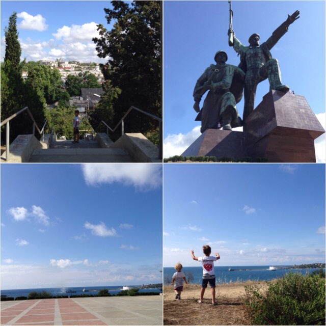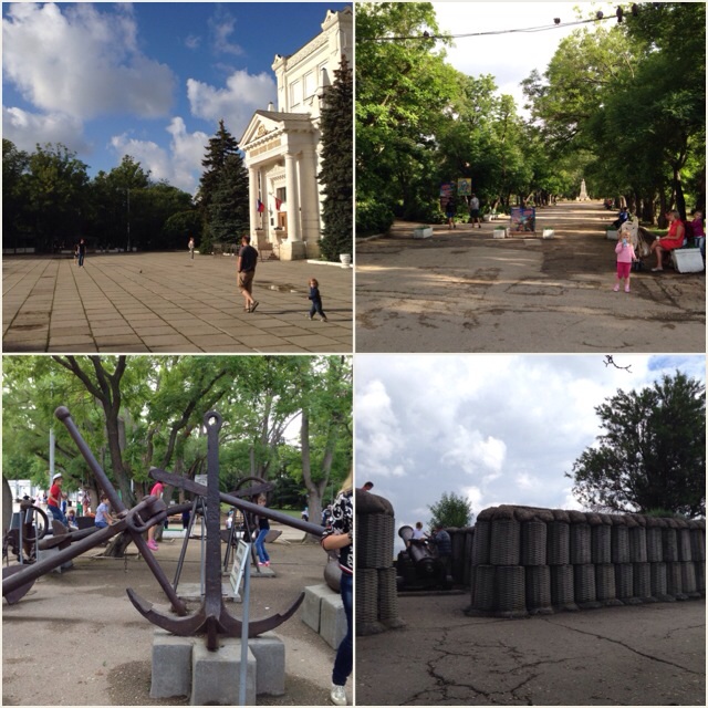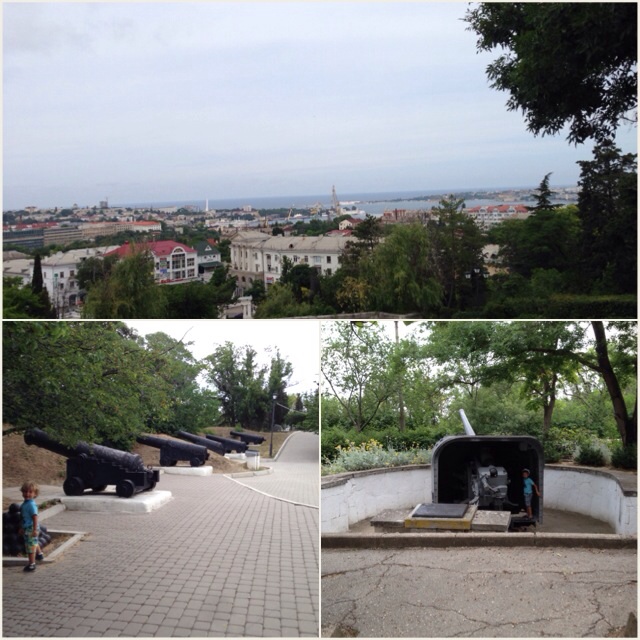 Мы очень полюбили гулять на Малаховом кургане. Опять-таки место, где интересно и детям и взрослым. Мальчишки лазают по пушкам, бегают по пригоркам. Во все стороны открывается потрясающий вид. Вот что, оказывается, значит «господствующая высота». Потому то и был курган одной из ключевых точек обороны города как в 1854-55гг, так и во время ВОВ… Потому-то и говорили «потерять курган — потерять город»… Все три знаменитых адмирала (Корнилов, Истомин, Нахимов) погибли тут или были смертельно ранены…