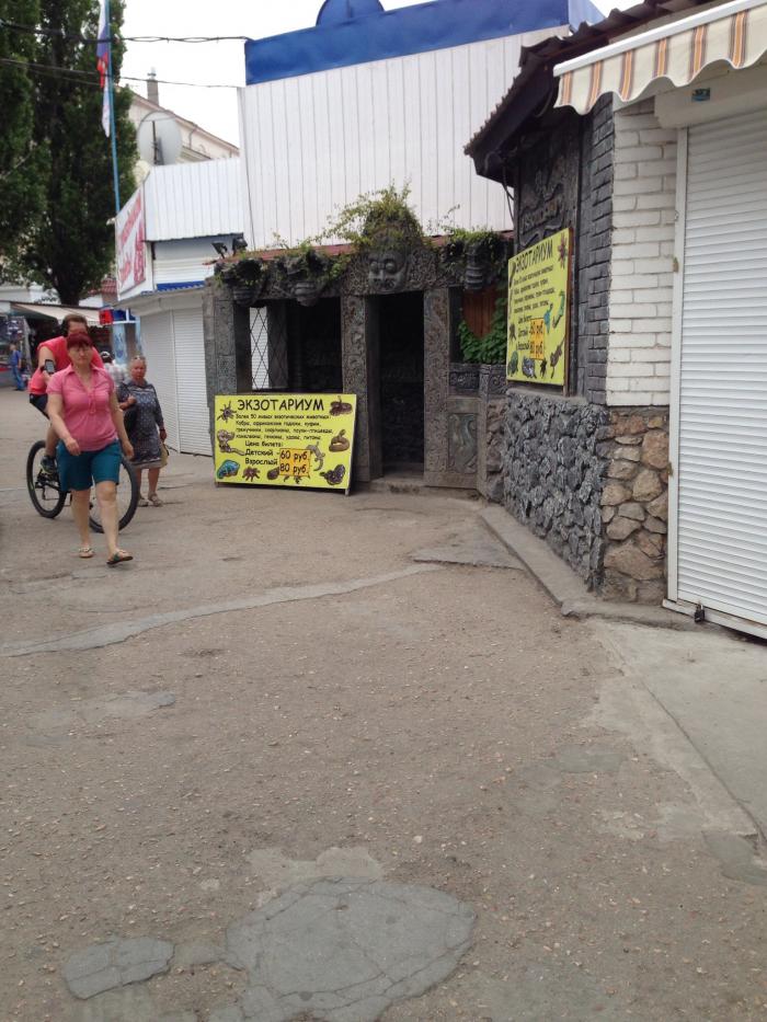 Экзотариум расположен прям рядом с Дельфинариумом в Артбухте. Цена — вообще символическая. Надо отдать должное мужчине, который там работает, провел целую экскурсию, про каждую змейку готов был во всех подробностях рассказывать. В итоге старший там надолго подвис, заслушался, мы с младшим его на улице ждали) хотя по-честному, ну, нечего там особо смотреть…