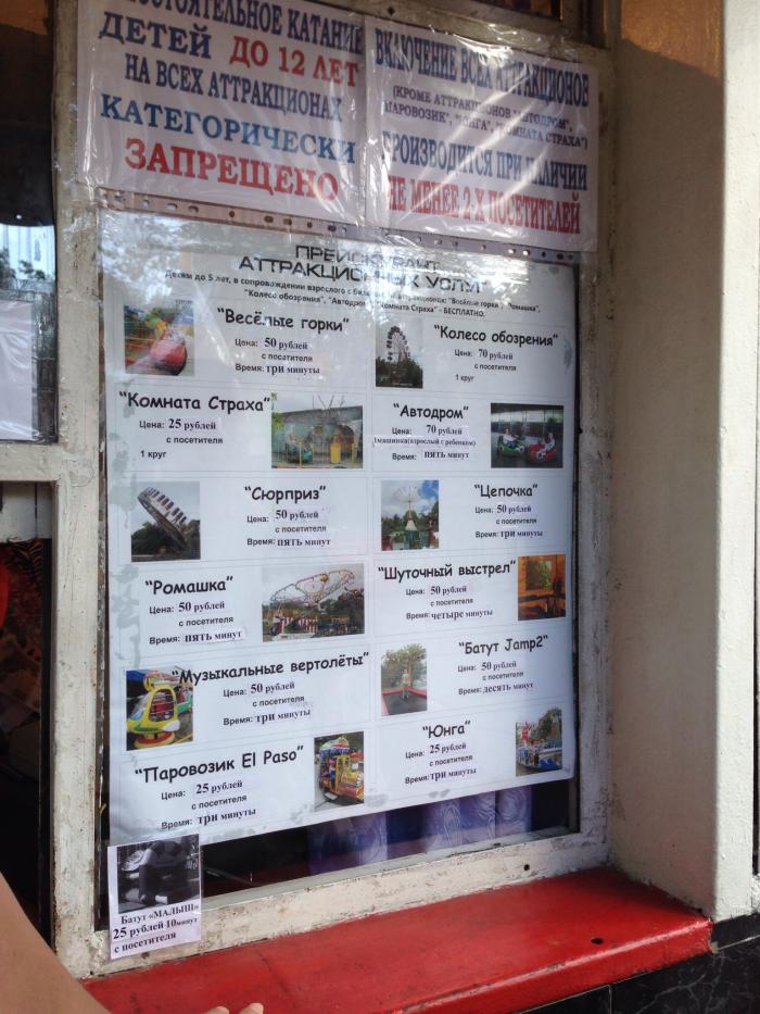 Как видите, любые удовольствия) мороженое 50р (которое выдавливают в стаканчик), кукуруза вареная 50р, латте 50р, детский лабиринт 100р за 20 минут, шезлонг 100р (неограниченное время), зонтик 100р.