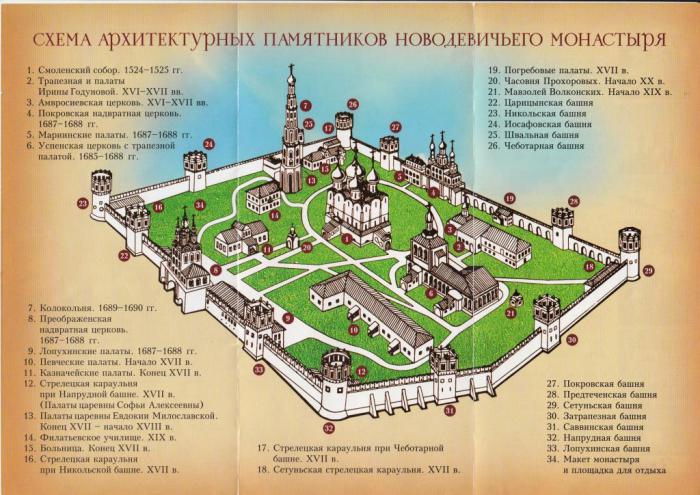 Новодевичий монастырь – довольно обширный по территории. Его церковные постройки образуют в плане крест – символ христианской веры.