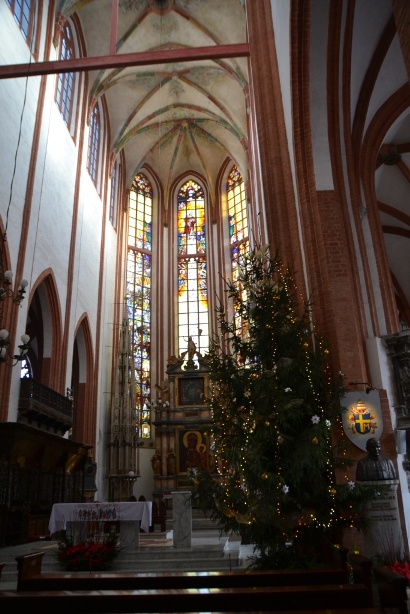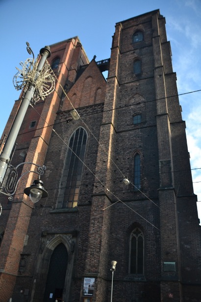 С противоположной стороны Рыночной площади находится костел Святой Марии Магдалены – величественное и монументальное сооружение. К сожалению, два изящных шпиля на башнях собора были разрушены, впрочем, как и одна из башен. Башню восстановили, а вот шпили – нет.