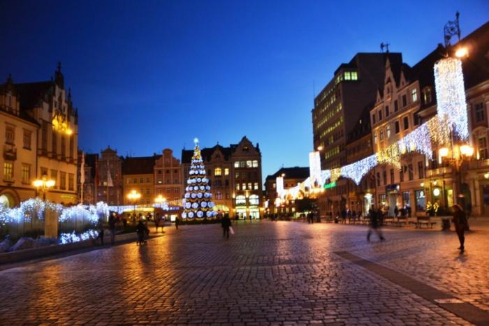 Вечером на Рыночной площади засияла иллюминация и загорелась елка, поэтому покидали этот город мы с глубоким сожалением. Вроцлав, до встречи!