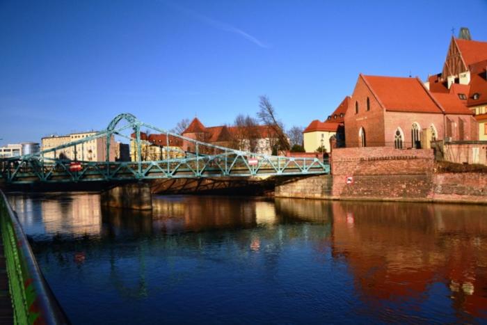 На Тумский остров ведет живописный мост, тоже Тумский, еще его называют Зеленым. Этимология вполне прозрачна в обоих случаях. Как известно, подобные мосты по всему миру для своих целей облюбовали молодожены. Говорят, что на самых красивых мостах местные коммунальщики периодически устраивают радикальное прореживание навешанных замочков, дабы дополнительный вес свадебных символов «любви до гроба» не обрушил стальные конструкции моста. Вероятно, не является исключением и этот вроцлавский мост: