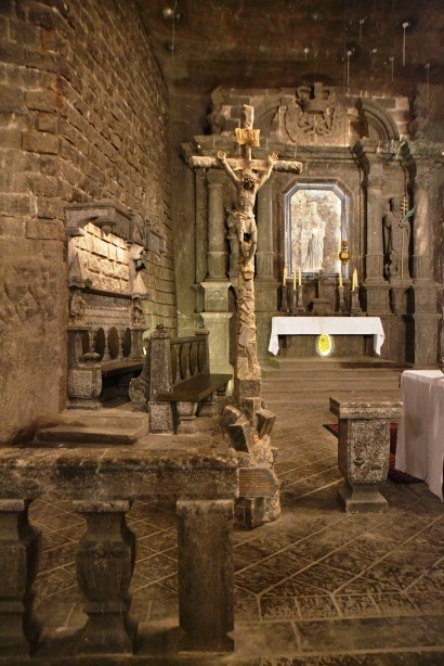 К сожалению, соляные скульптуры очень сильно подвержены влиянию влажного воздуха, под воздействием которого очертания как бы плавятся и оплывают. А вот для деревянных скульптур климат соляных шахт с отсутствием вредителей и бактерий является что ни на есть благоприятным. Вот как пишет о деревянной скульптуре Велички наша книга: «В часовне св. Распятия, в середине XIX в. перенесенной на второй уровень из опасного места, находится одна из немногих в шахте деревянных скульптур (XVII в.), представляющая распятого Христа и фигуру Богоматери Победоносной. В 2005 г. на III уровень была перенесена прекрасная деревянная часовня Св. Иоанна (Яна) середины XIX в., которая ранее располагалась на I уровне шахты вдали от туристической трассы»
