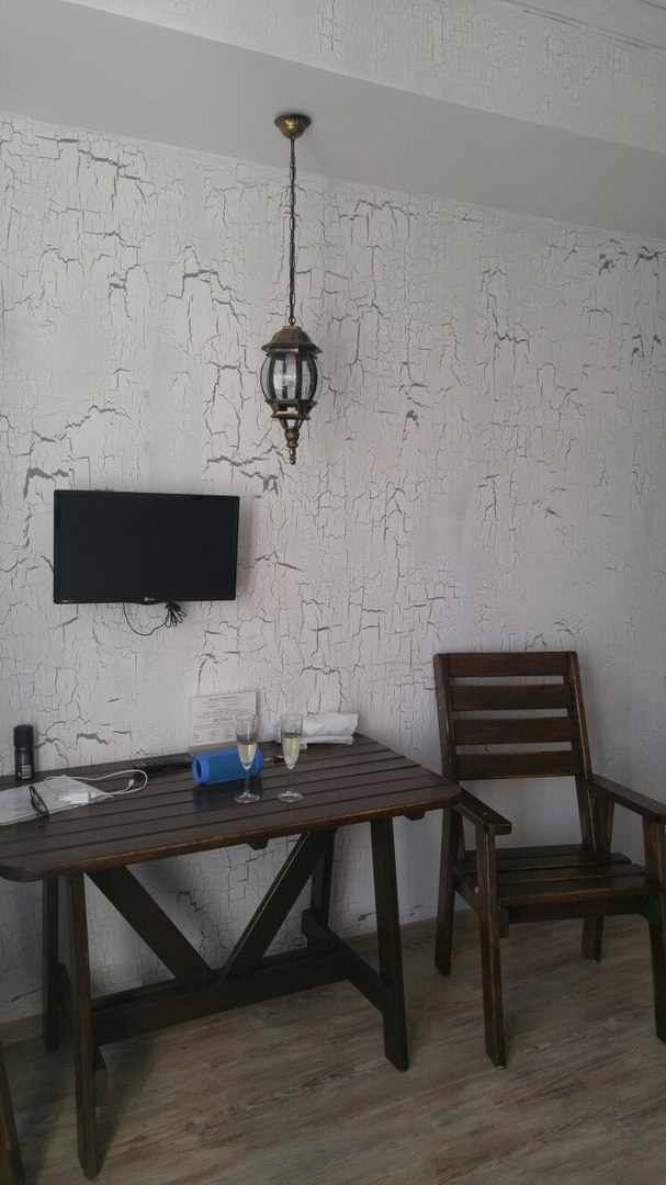 На ресепе предложили бокал шампанского за приезд, вроде ничего такого, а приятно, тут же подсказали куда можно пойти покушать и если сказать пароль отеля, то в этой кафешке будет скидка. В кафе рядом сидящие видимо отмечали юбилей и активно пели песни, никакой караоке не нужен.