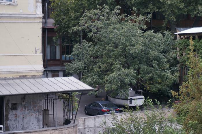 В Тбилиси прибыли к половине шестого по местному времени. Изначально планировали переночевать в тех же апартаментах, где останавливались в прошлом году, в самом центре Тбилиси, но буквально за несколько дней до старта с нами связалась хозяйка жилья и сообщила, что по техническим причинам (соседи сверху затопили) заселение невозможно. Взамен, были предложены , в десяти минутах ходьбы от прежнего места, рядом с Сухим мостом и знаменитой барахолкой, в уютном грузинском дворике, со скидкой. Разумеется, мы согласились и не пожалели.