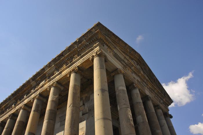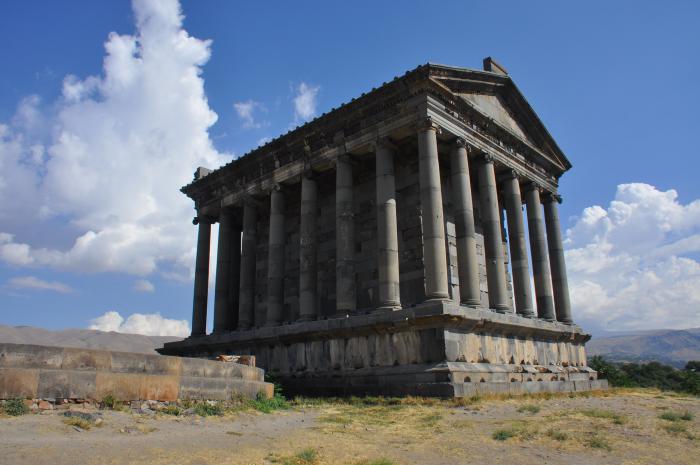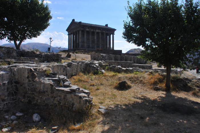 Еще один день посвящаем поездке в храмы Гарни и Гегард. Начинаем с языческого . Когда-то он то же лежал в руинах, но в советское время, с 1966 по 1976 годы, был восстановлен.