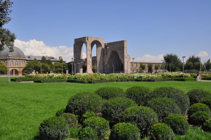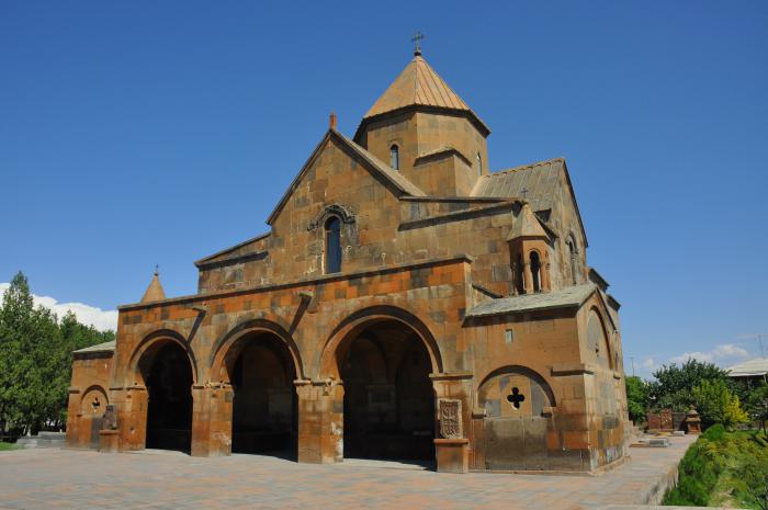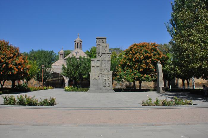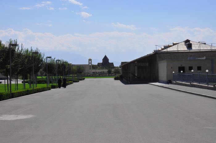 Закончив с осмотром Эребуни едем в город Вагаршапат, где расположен монастырский комплекс с резиденцией Католикоса Всех Армян. Нам не очень повезло – Эчмиадзинский кафедральный собор одет в строительные леса, идет реконструкция.