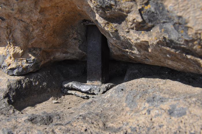 Как поставили мастера камушек в 76 году I века нашей эры на металлический штырь, установленный в залитое свинцом углубление, так и стоит до сих пор.