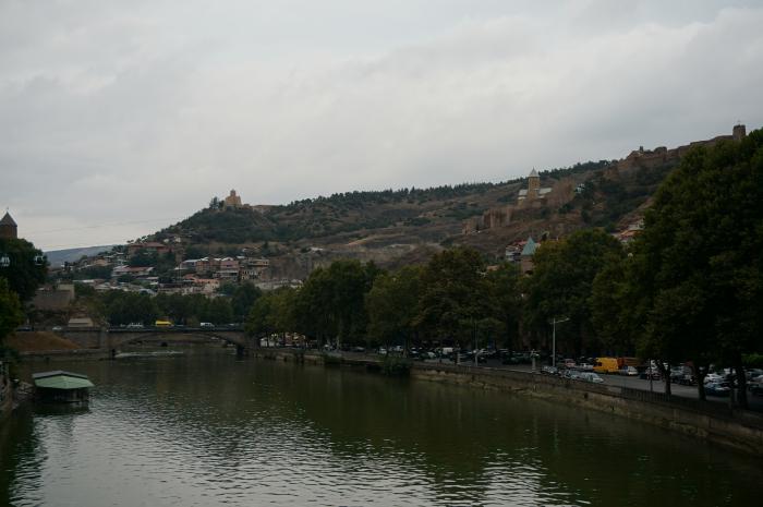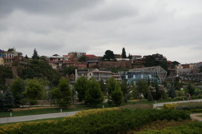 Во дворе нашлось место для машины, есть мансарда (на фото справа, за деревьями, первый этаж) и можно сразу попасть на набережную. Впрочем, расслабляться и предаваться отдыху мы не стали, а сразу отправились на прогулку по старому Тбилиси. Мы и не предполагали, что так соскучились за год по этому замечательному городу!