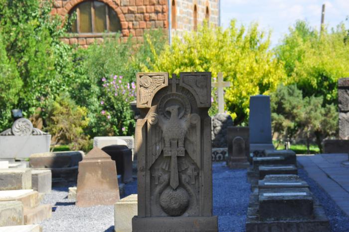 На второй день пребывания в Ереване мы отправились к ближайшим от города достопримечательностям, но прежде чем начать туристический маршрут заехали в , положить цветы на могилу Фрунзика Мкртчана…