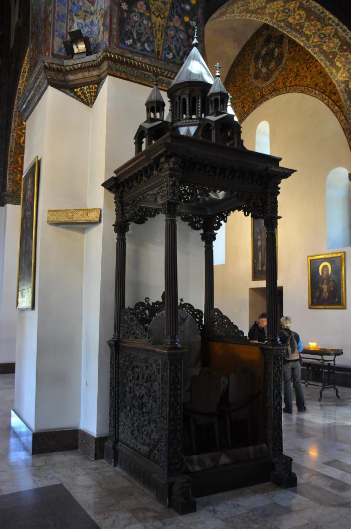 Богатейшее внутреннее убранство собора восхищает, ничего подобного мы больше нигде в Армении не видели.