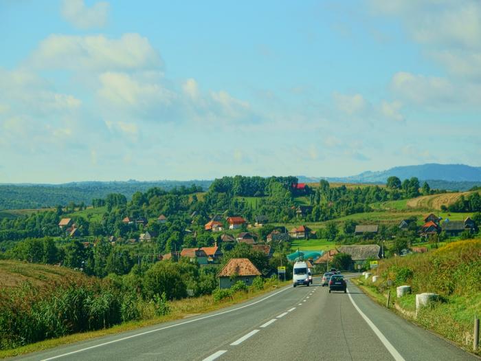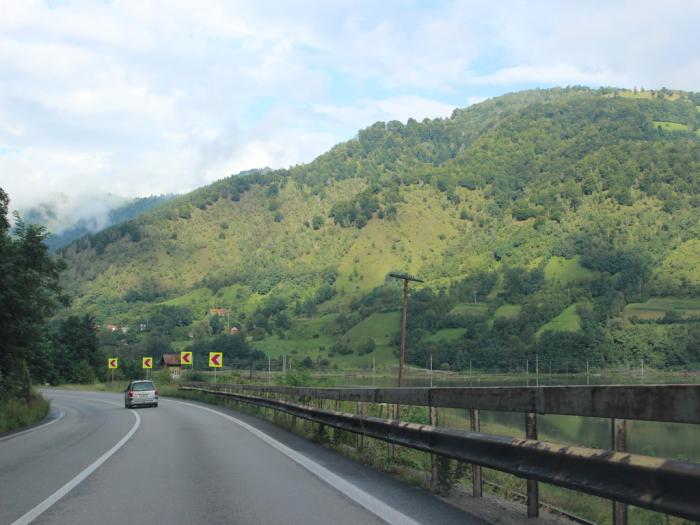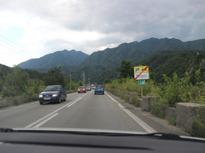 В городе Сибиу первая встреча с румынскими полицейскими. Двигаясь в потоке навстречу низкому солнцу пропустили знак, радар, превысили скорость. Задушевная беседа на английском (благо — штурман владеет) про российский автопром, который выпускает Поло-седан (удивление), про российскую систему штрафов, не предусматривающую наказание при превышении до 20 км/час (снисходительная ухмылка) про возможность изъятия моих прав и отправку их в российское посольство. В конце концов 50 евро на месте с квитанцией. Интересно, где они набрали этих квитанций..? Потом они посоветовали нам выехать на новую магистраль до Клужа, указали направление. Как оказалось, очень приблизительно. Повоевав опять с Навителом, после Себеша мы таки выехали на эту магистраль, но ненадолго. Горные пейзажи до Оради нам были утехой.