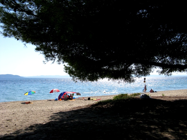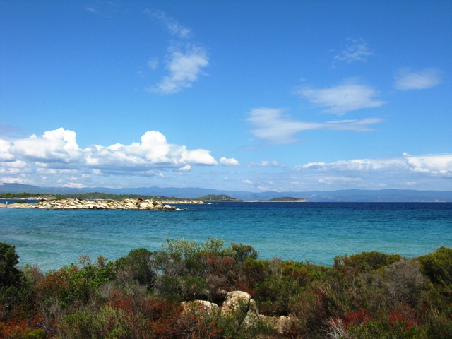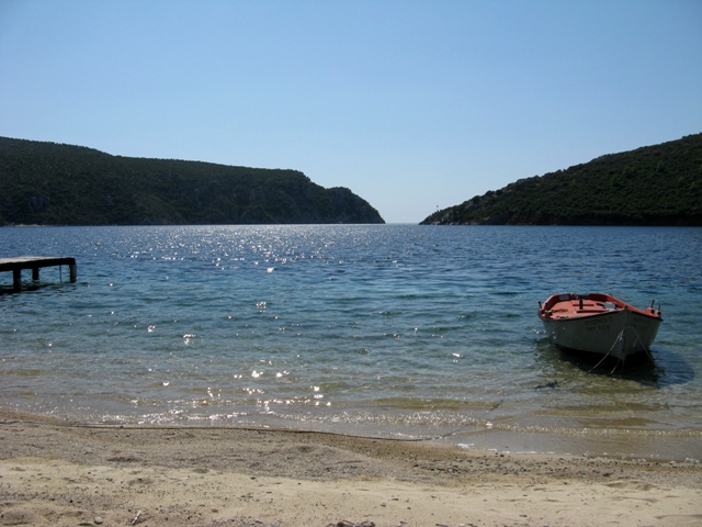 Наконец-то хорошая погода, с самого утра на улице тепло и светит яркое солнце. Быстро позавтракали и отправились на вчерашний пляж, где пробыли до обеда. Покормив детей, мы поехали на машине путешествовать по всему полуострову Ситония. Надо заметить, что все три «пальца» Халкидики: Кассандра, Ситония и Афон расположены довольно близко друг к другу и двигаясь по восточному побережью Ситонии на горизонте в легкой дымке всегда виднелась гора Афон, а переехав на западное побережье, мы легко могли различить профиль полуострова Кассандра. Сам же полуостров Ситония поразил нас бурной растительностью, а именно сосновыми лесами и большим количеством оливковых рощ, среди которых часто встречались виноградники. Поднимаясь на возвышенности, мы часто останавливались на небольших стоянках, откуда открывались потрясающие виды и, не всегда успешно, пытались все это запечатлеть на нашу «мыльницу», в очередной раз вспоминая о необходимости приобретения более качественного фотоаппарата. Побывав практически на всех более ли менее крупных пляжах полуострова, больше всего нас впечатлили: порт Коуфу – больше похожий на озеро, со всех сторон окружен зелеными холмами и соединённый с морем едва заметным проливом, тихое, живописное и малолюдное место с безупречно чистой водой и рыбными ресторанчиками на берегу; Лагамандра Бич – это еще одно замечательное место, где воздух пропитан запахом хвои, довольно широкий пляж из крупного песка, который граничит с сосновым лесом и как всегда незначительное количество отдыхающих. Не знаем как в середине сезона, но в сентябре народу действительно было мало, боле менее заметное скопление людей мы заметили в поселках Неос Мармарас и Никити, впрочем, они являются самыми значительными туристическими центрами на Ситонии. Если хочется отдохнуть в уединенности и тишине, то Ситония это то что надо. Так же мы часто встречали указатели на большое количество кемпингов, расположенных в живописных бухтах. Совершив круг по полуострову, мы вернулись на наше побережье и, не доезжая двух километрах до отеля, свернули к пляжу. Здесь оказалось побережье изрезанное маленькими уединенными бухточками и, присмотрев одну из них на завтра, мы вернулись в отель. Вечером мы гуляли по нашему поселку, дети мирно заснули в колясках, а мы еще долго сидели в таверне, смакуя греческую кухню и наслаждаясь тихим теплым вечером.