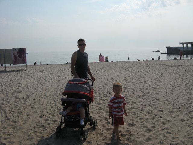 Разместившись в отеле , мы пошли к морю, по пути поменяв немного местной валюты, которую тут же потратили на сувениры. Черноморское побережье Болгарии встретило нас штормом и красным флагом на спасательной вышке. Погуляв немного по берегу и посмотрев на недружелюбное, но от этого не менее красивое море, мы отправились в отель, где и провели оставшийся день. Курорт «Золотые Пески» показался нам не самым лучшим местом отдыха с маленькими детьми: постоянные спуски и подъемы (даже на территории отеля), большая плотность застройки, протяженный и широкий песчаный пляж очень многолюден и полностью заставлен шезлонгами, зонтиками и столиками. В результате, практически нигде нельзя было отпустить детей спокойно побегать. Уложив детей спать, мы сидели на балконе, слушали шум моря и обсуждали завтрашний день.